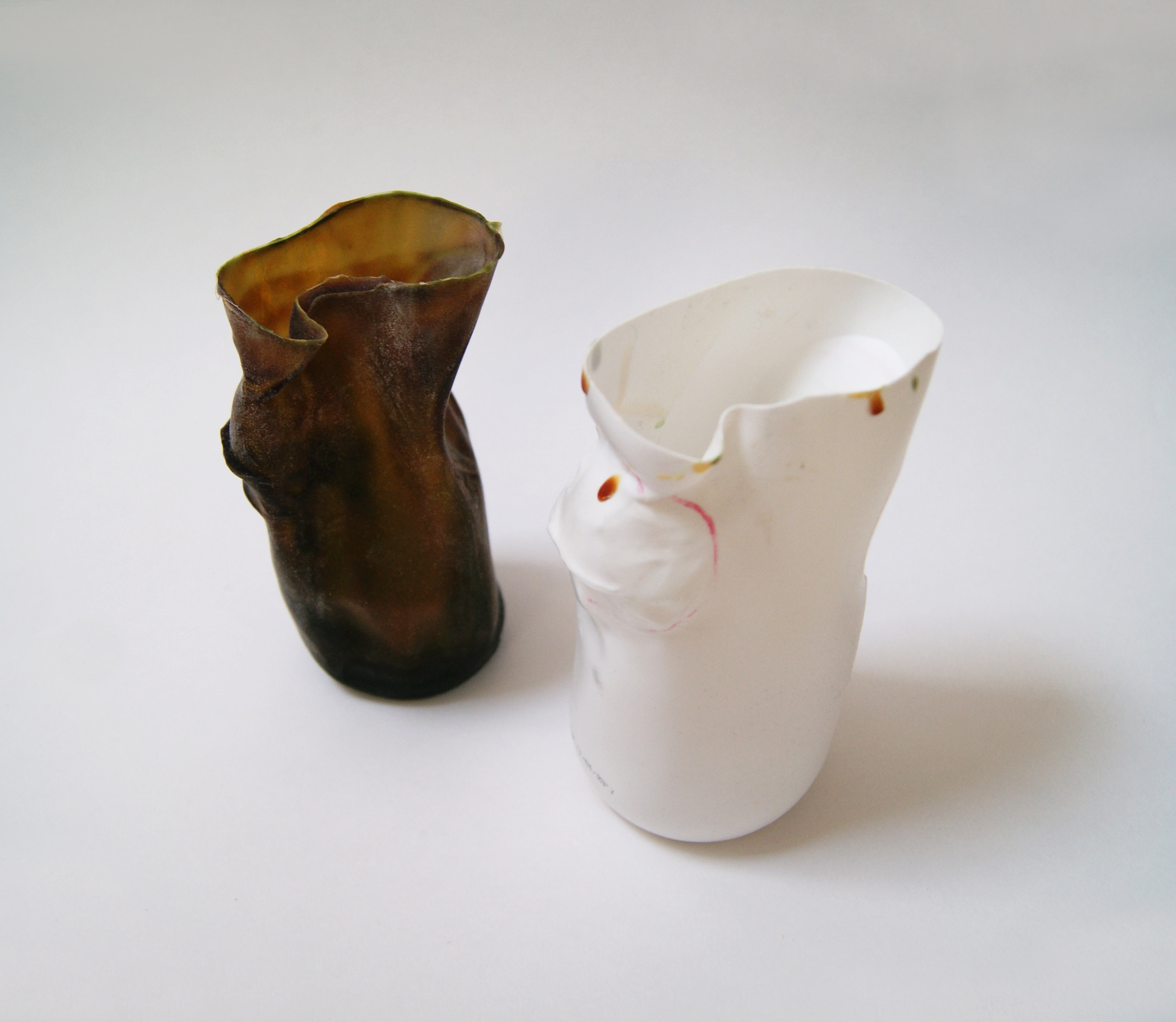 From this concept, I extracted a key concept: that of augmented reality. In other words, the indices carried by the object become readable and the usage turns intuitive when a return of actions performed on the object is immediately noticeable. Thus, through my laboratory of forms, I tried to increase the predictive reading of clues, including the gesture in the design and the usage. In this way, my exploration hinges on around three main actions that involve very specific set of gestures: to compress, to dig, to gather. By analyzing the gesture in its movement, I sought forms, footprints, clues that could make the action and the usage easier, a projection of the gesture. From these experimentations, we can say that an analysis of the gesture is required to read the clue. The gesture allows to read the clue, to analyse, to create and to understand it.
