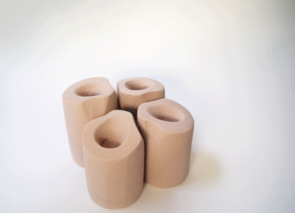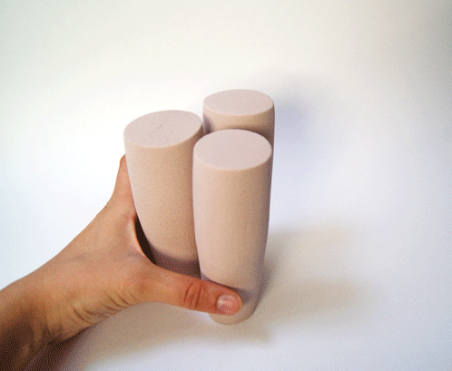 De ce concept j'ai extrait une notion clé celle de la réalité augmentée. Autrement dit, les indices portés par l'objet deviennent lisible et l'usage intuitif dès lors qu'un retour des actions effectuées sur l'objet est immédiatement perceptible. Ainsi, au travers de mon laboratoire de formes, j'ai tenté d'accroître la lecture intuitive des indices, en incluant le geste dans la conception et l'usage. J'ai ainsi, articulé ma prospection autour de trois grandes actions qui impliquent un ensemble très particulier de gestes: comprimer, creuser, réunir. En analysant le geste dans son mouvement, j'ai cherché à obtenir des formes, des empreintes, des indices susceptibles de rendre l'action, l'usage plus facile, une projection du geste. En ressort de ces expérimentations une analyse du geste comme nécessaire à la lecture de l'indice. Le geste permet de lire l'indice, d'analyser de créer et comprendre.